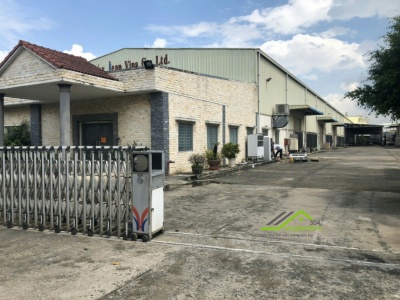 -Diện tích đất 18000m2, nhà xưởng xây dựng 10400m2, vp 670m2, kho 1200m2, các công trình phụ trợ đầy đủ,